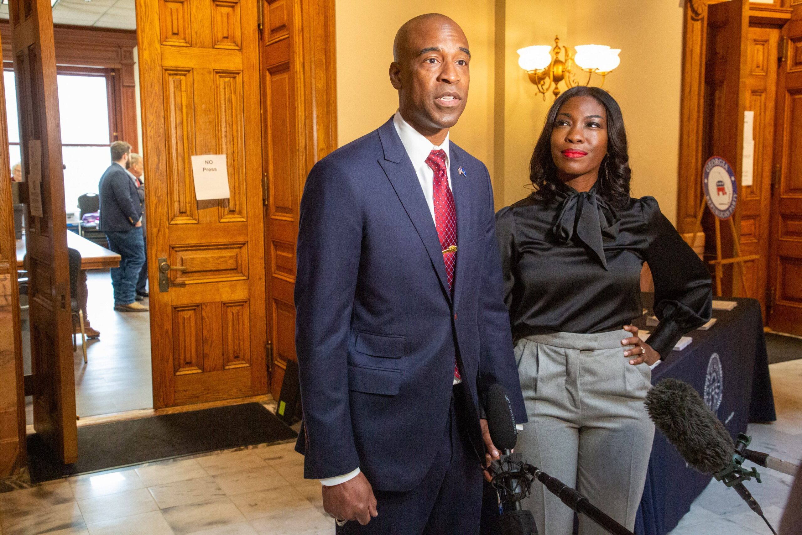 Election board member slams Georgia voting chief as husband runs for his job
